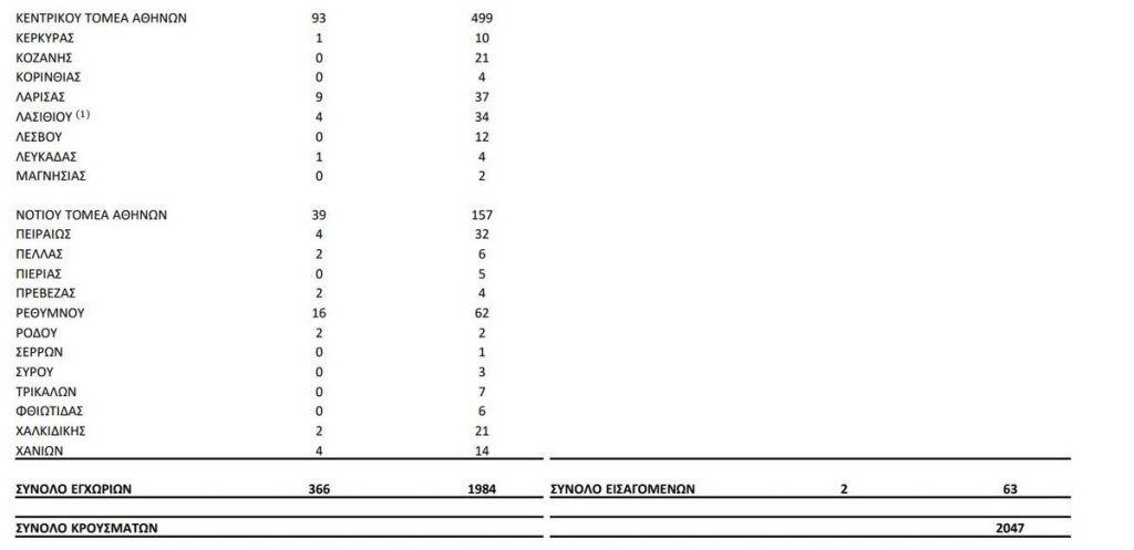 Τα δείγματα προέρχονται από τις Περιφέρειες, Κεντρικής Μακεδονίας, Ηπείρου, Θεσσαλίας, Κρήτης, Αττικής και τις Περιφερειακές Ενότητες Λευκάδας, Φθιώτιδας και Ρόδου.