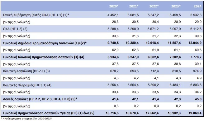 Η συμβολή του ιδιωτικού τομέα στη συνολική χρηματοδότηση για δαπάνες υγείας αυξήθηκε από 38,6% το έτος 2023 σε 39,1% το 2024.