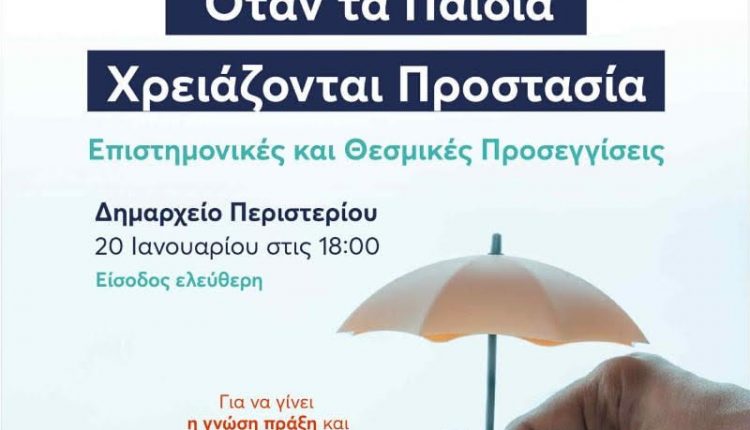 Ημερίδα στο Περιστέρι από τον Θάλπο και τον μεγαλύτερο δήμο της χώρας, για τη «Θυματοποίηση και Προστασία Ανηλίκων»